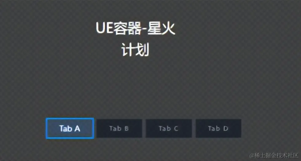 这里还是以选项卡为例,第一步,在 EasyV 里准备好 UE容器-星火计划 和 选项卡 组件。可以通过搜索框找到 UE容器-星火计划(如果搜索不到该组件,可以向运营同学询问获取)。
