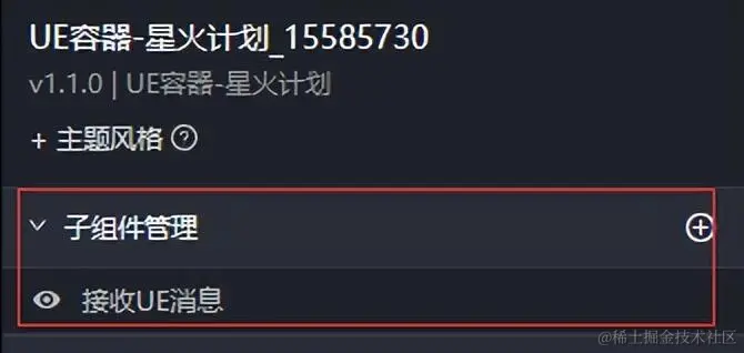 UE 给 EasyV 发消息,需要用到 UE容器-星火计划 的子组件,这里我们首先添加一个子组件。