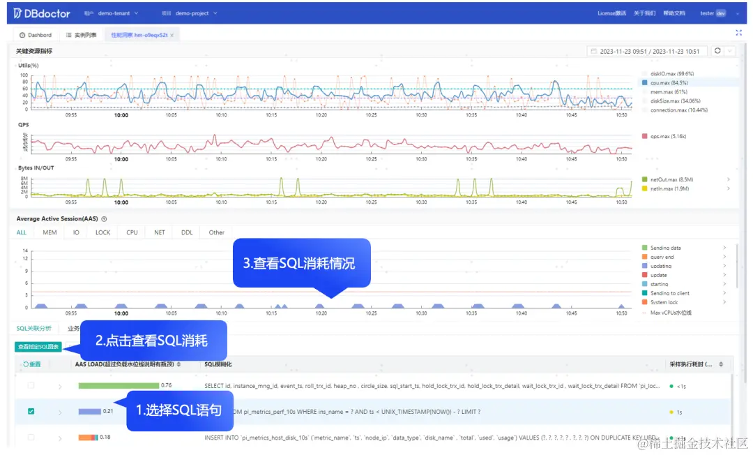 数据库发展到今天,基于 Prometheus 和 Grafana 很容易就搭建一套数据库监控系统,从主机、容器到实例,监控指标上百个,同时也会采集慢日志、错误日志、审计日志等定位问题。但性能问题仍然是最大的痛点,关键现象有三: