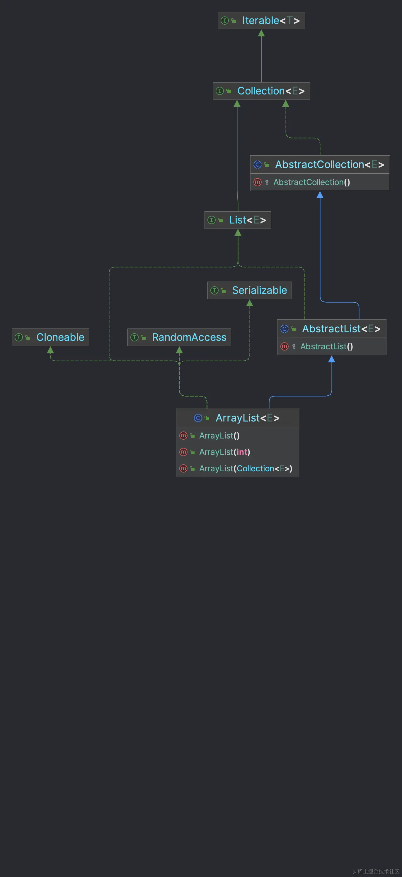 - 构造包含指定collection元素的列表,这些元素利用该集合的迭代器按顺序返回