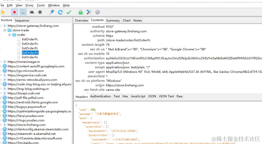 微信打开一个小程序,操作后查看Charles,可以看到接口成功抓到了。