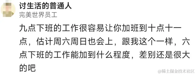 九点下班就像是加班的无底洞,永远不知道自己何时能脱身。六点下班至少还有个‘下班’的幻觉,哪怕是假的也好。