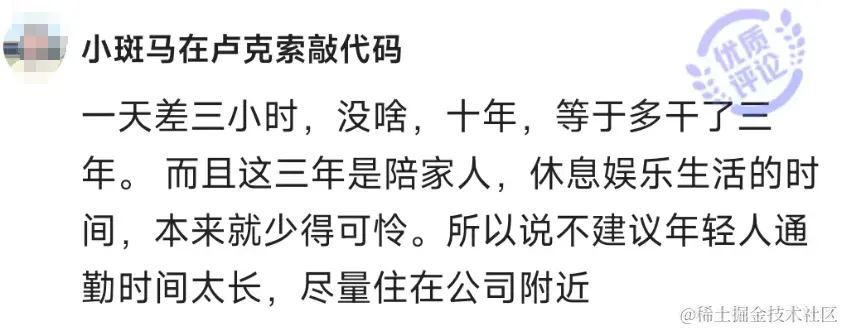 精辟!一言以蔽之,这三小时差的不仅是时间,还有你的生活品质和社交圈。说白了,多出的三小时就是你的自由时间,要么陪家人,要么自己享受,不然就是白白送给公司了。