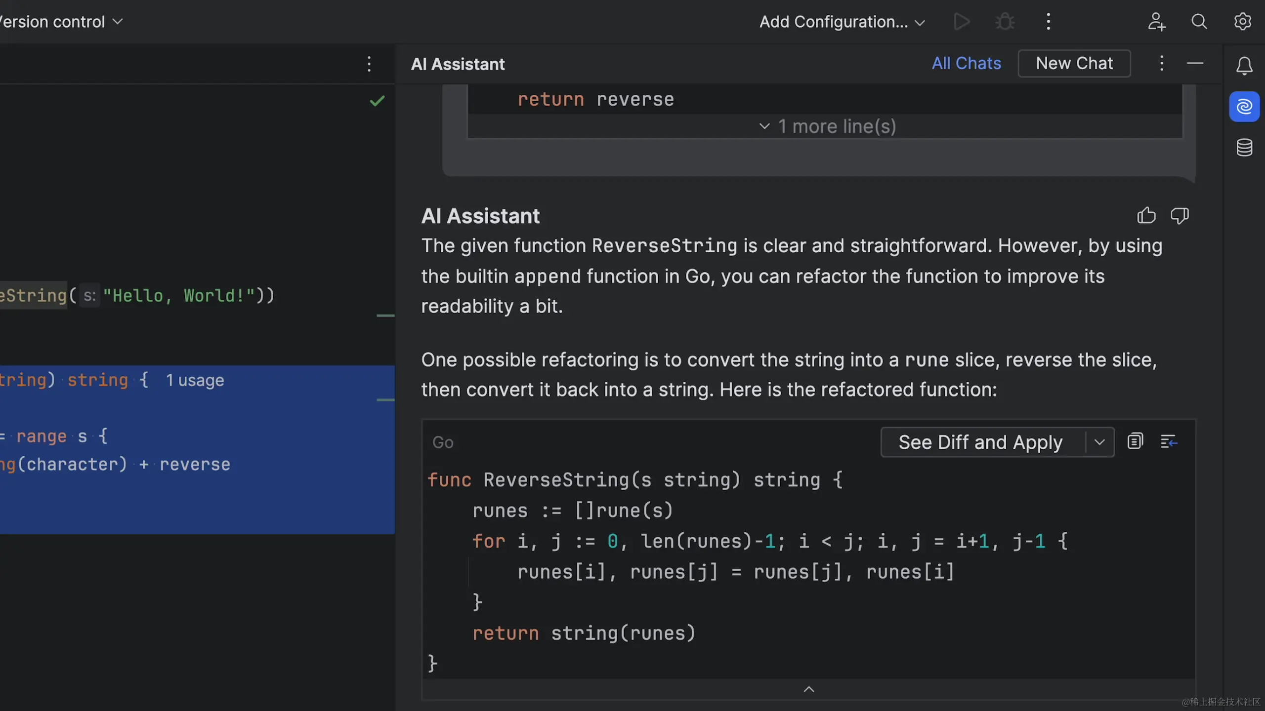 最近,JetBrains IDE 重磅推出了自己的 AI 助手,AI Assistant。号称,借助 JetBrains AI,您最喜爱的工具将获得新能力,同时您可以轻松获得更多信息。将自己从重复性任务中解放出来,以前所未有的方式保持流畅。