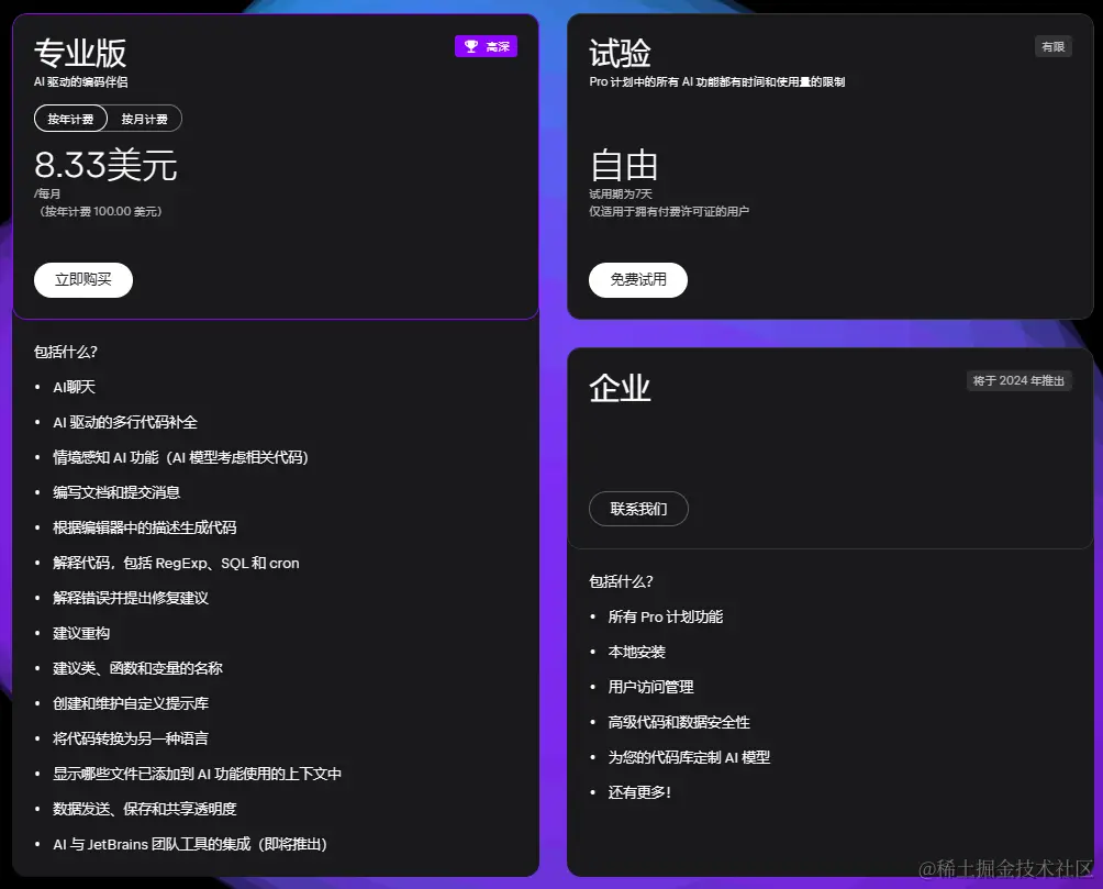 Copilot可以直接在 Visual Studio、VS Code 和 Neovim 等流行工具以及 JetBrains 的 IDE 中使用,它能够分析大量的代码上下文,AI Assistant是Jetbrains 专门定制的工具,在Idea,pycharm等开发工具中集成的更好。 这两种工具都通过自动编写简单的样板代码来提高开发人员的工作效率,并且可以通过让开发人员将更多时间花在更高级别的任务上来提高开发人员的工作效率,都能够用于解释代码、建议最佳实践、生成测试和修复错误。Copilot 与 JetBrains AI Assistant 订阅费用都为每月 10 美元。