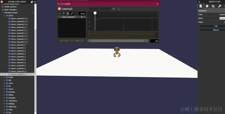 (2)接下来就要引入 Inspector 模块了,参考文章开始的 playground、sandbox或代码方式来引入 Inspetor, 引入后打开动画编辑器,新建动画。