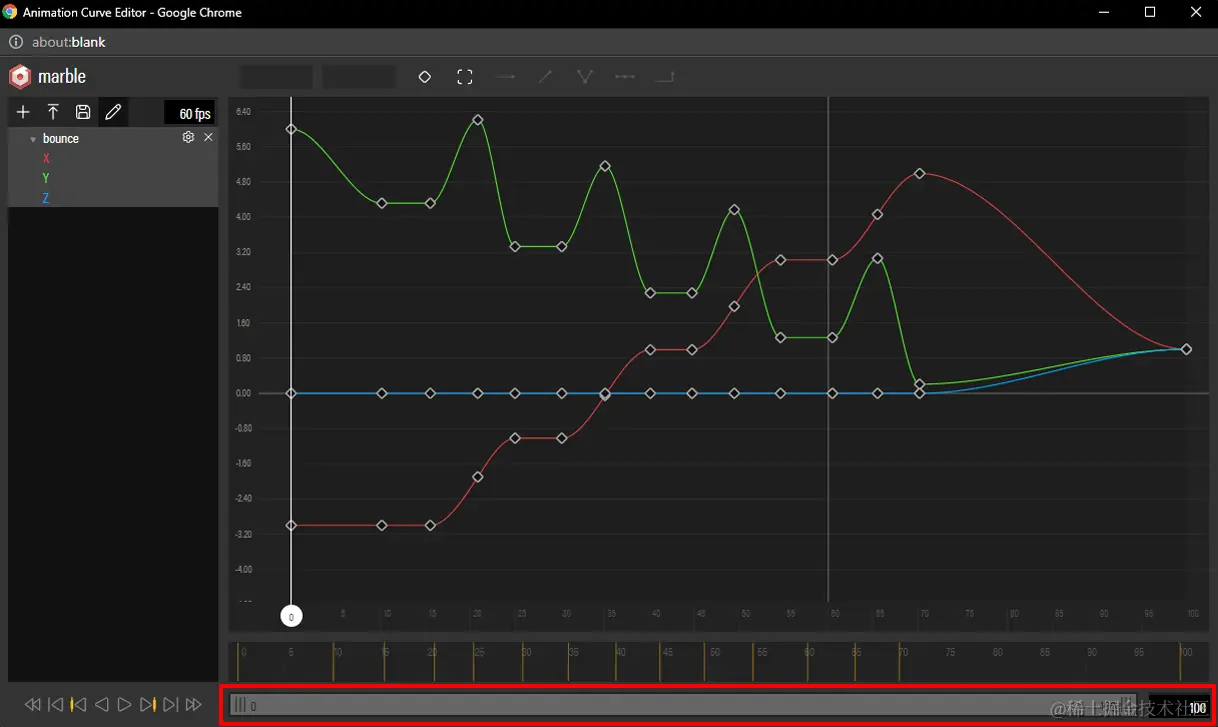 累计耗时乘以 默认 每秒渲染的帧数, 就可以得到最终的动画帧数据了**(切记不要忘了乘每秒帧数,默认每秒60帧)。**