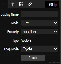 "+" 按钮即为创建动画按钮,一个动画编辑器中可以创建多个动画,每个动画中的选项如下: