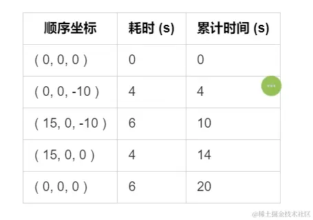 给物体运动设置一个固定速度,比如每秒 2.5 个单位,使用坐标算出来每个坐标到坐标的距离,然后除以时间,结果就是每个单独路径的耗时。