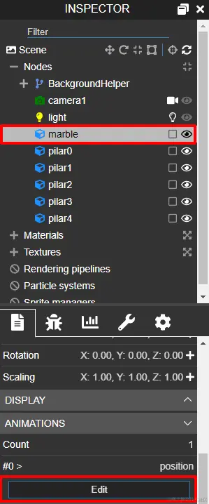 在使用动画编辑器之前,小编向大家简单介绍一下Babylon.js中的动画。实际上,Babylon.js中的动画是按顺序执行的一系列静态画面。因此,只要了解每一帧模型对象的属性值,就可以制作出对应的动画效果。
