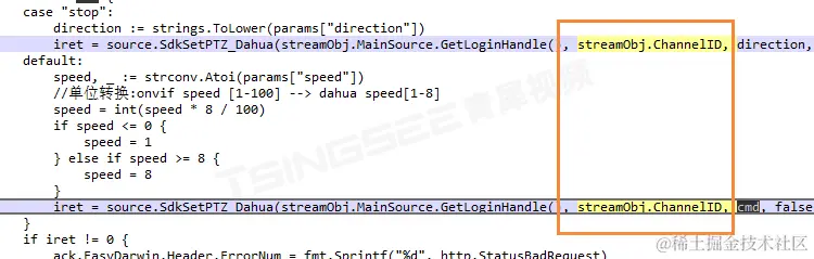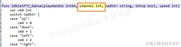 3)继续查看go代码是否参数有问题,找到大华控制云台的go代码进行查看,发现控制大华云台里面默认写的是第0通道,可以判断这个是错误的。