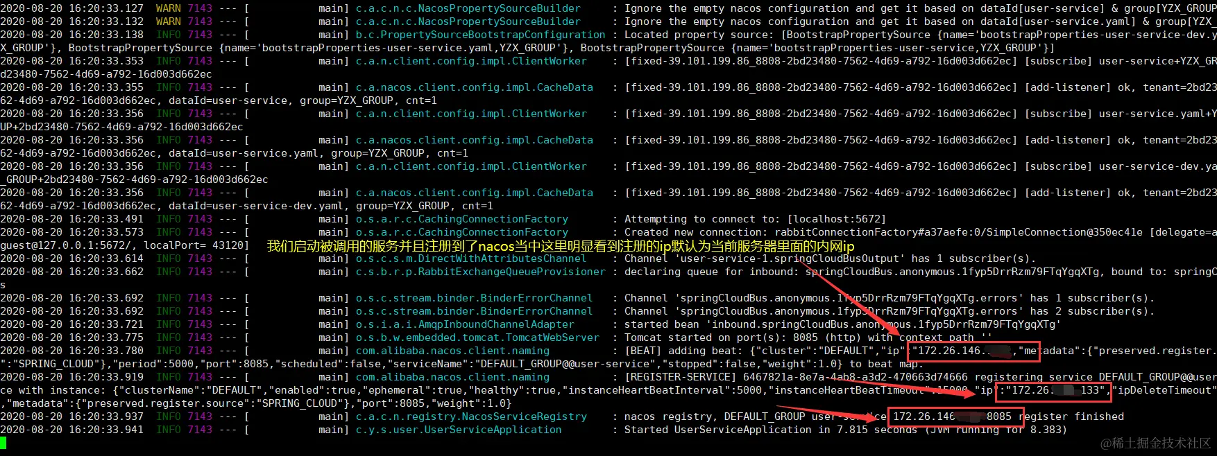 相信到这里就应该知道直接使用内网 是访问不了服务器接口的 这里我们查看nacos服务里面的ip就是内网