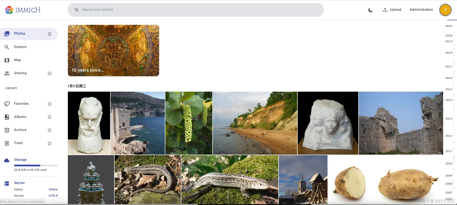 Immich 是一个直接从 iPhone、Android 手机上备份照片与视频的开源解决方案,通过部署在自己的电脑、NAS、服务器中,使用 App 进行备份。界面酷似 Google Photos,支持多用户、照片和相册分享、好友上传、地理位置、机器学习识别事件等功能。