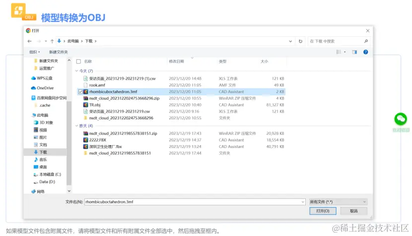 通过3MF转OBJ网站生成的下载链接,可以将OBJ格式的模型文件下载到本地。生成的下载链接24小时内有效,超时将不能下载,需要及时下载文件。