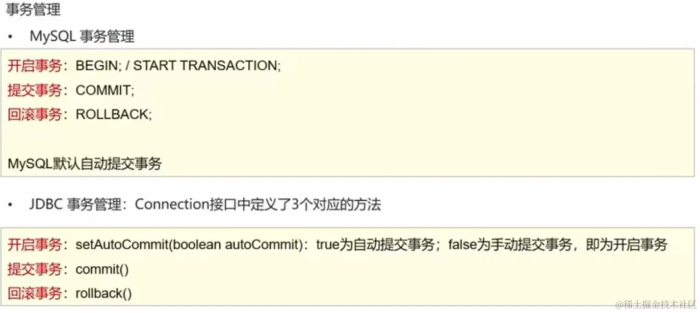 可以利用JDBC的三个方法来管理事务: