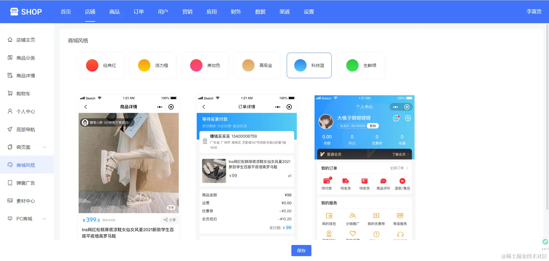 支持DIY多模板:商家可以根据自己的需求选择不同的模板,打造个性化商城。