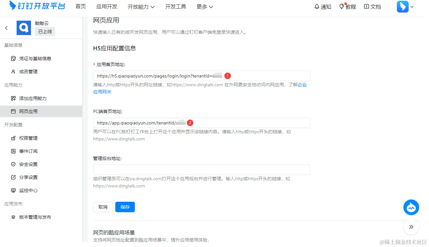 - ② PC端首页地址:app.qiaoqiaoyun.com/tenantId/租户…