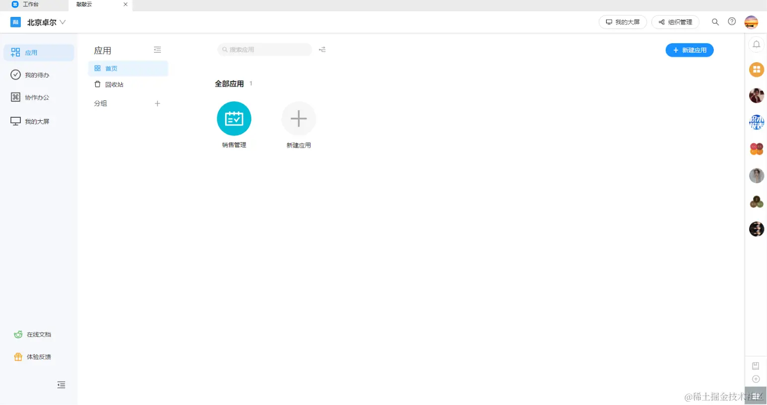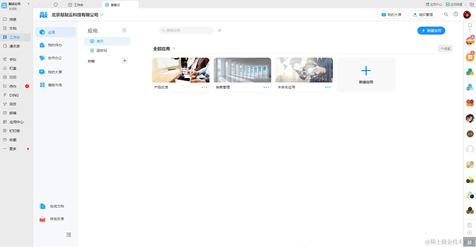 - 在PC端钉钉找到工作台,找到对应创建的应用,直接点击即可