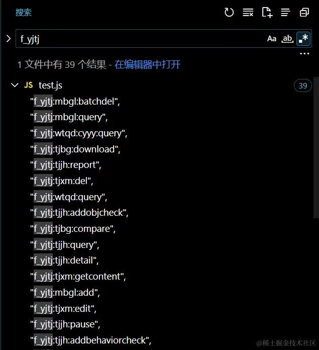 例如搜索 m_xtgl,实际项目中搜索出来的结果更多,