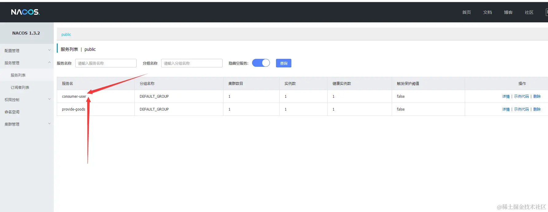 7. 启动两个服务 consumer和 provide 去nacos查看是否有