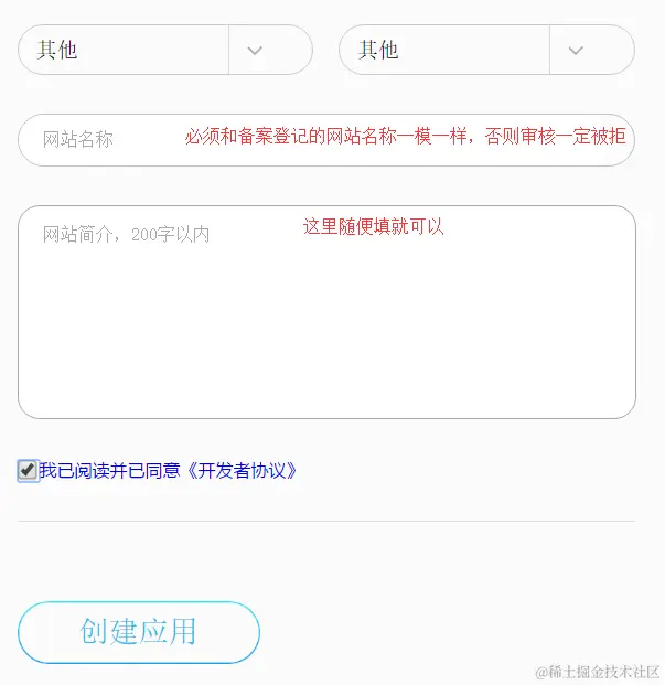 进入应用管理页面创建应用,根据实际需要是创建网站应用还是移动应用,我这里是网站应用: