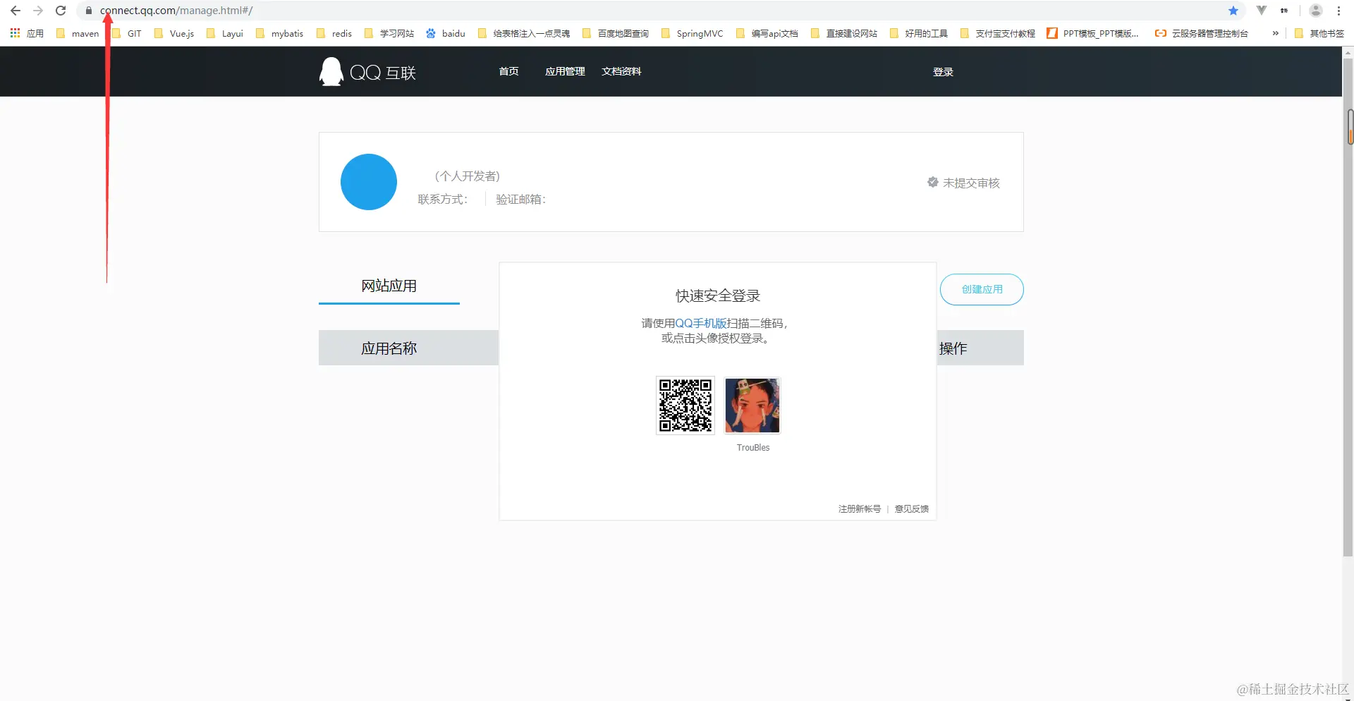 QQ登录我们对接的是QQ互联,地址:connect.qq.com ,首先需要注册成为开发者并实名认证,需要手持身份证照片,具体就不讲了。