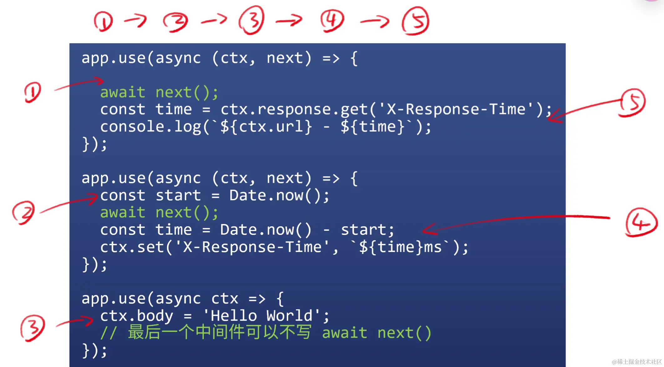 - 2后面的await next()会等待3执行完毕