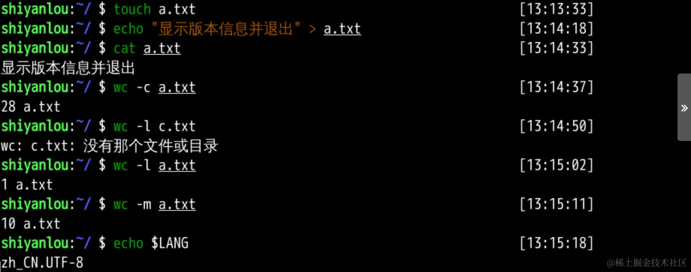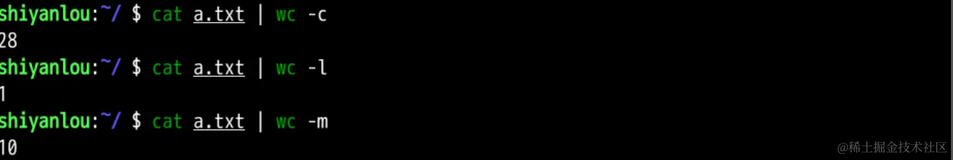 - 统计文件的字节数、行数和字符数,只打印数字,不打印文件名