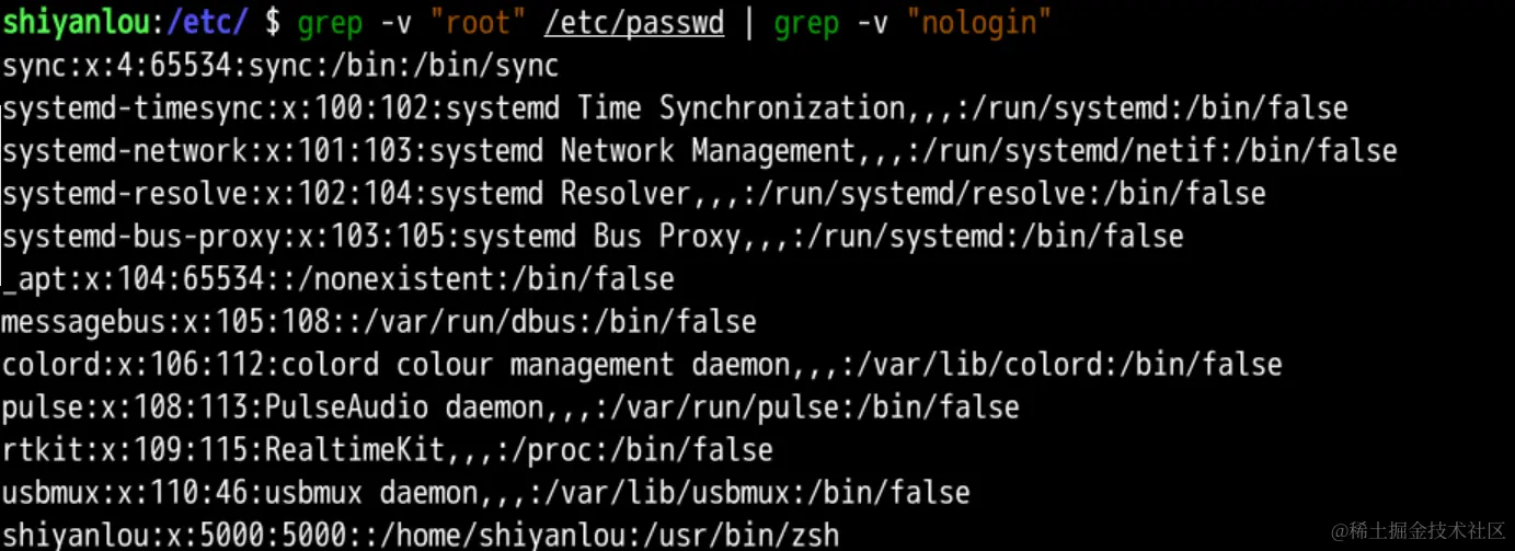 /etc/passwd文件中没有出现 root 和 nologin 的行取出来- -v:反向选择,打印不匹配的行
