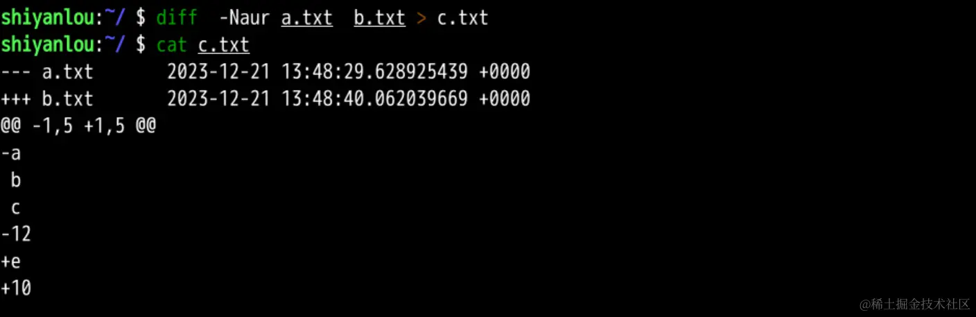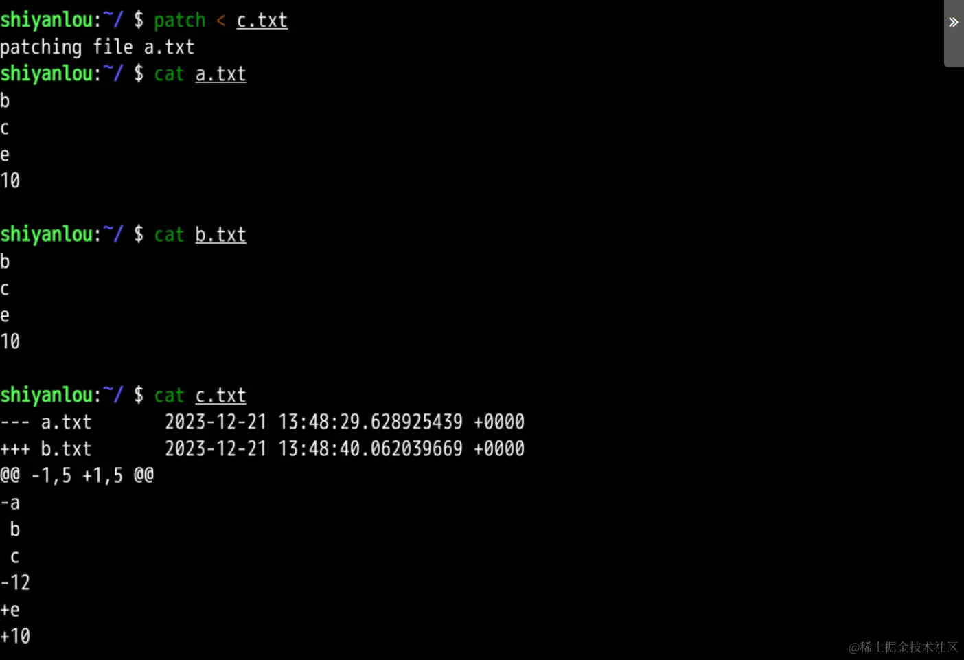 a.txt和b.txt的 diff 文件,然后应用 patch 命令更新a.txt文件,可以使用如下命令: