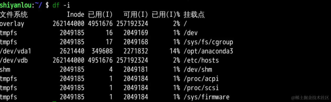 | -x<文件系统类型> | 不显示选定文件系统的磁盘信息 |