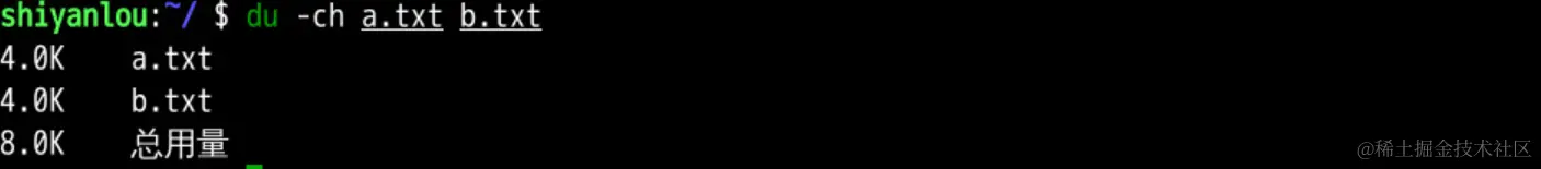 - 显示几个文件或目录各自占用磁盘空间的大小