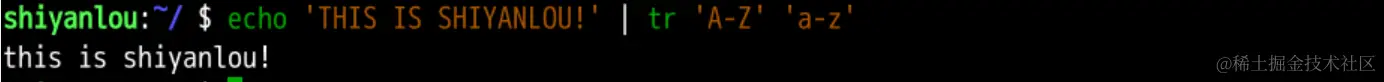- 常被用来更改字符,我们可以把它看作是一种基于字符的查找和替换操作。换字是一种把字符从一个字母转换为另一个字母的过程,tr 可以从标准输入中替换、缩减和删除字符,并将结果写到标准输出。