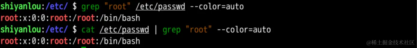 /etc/passwd文件中出现 root 的行取出来,关键词部分加上颜色显示--color=auto选项将匹配到的部分显示为彩色