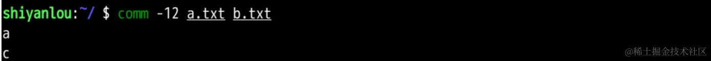 - 注意,comm 命令和 join、uniq 命令一样,只能用于已经排过序的数据。