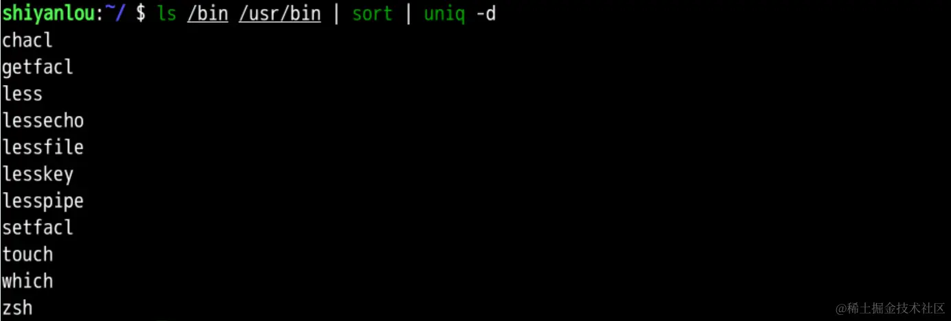 /bin目录和/usr/bin目录下所有相同的命令- Uniq -d :重复过的