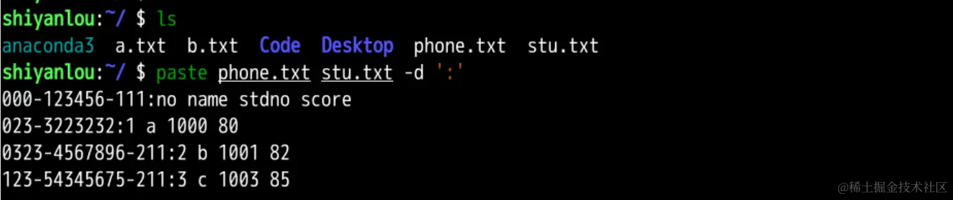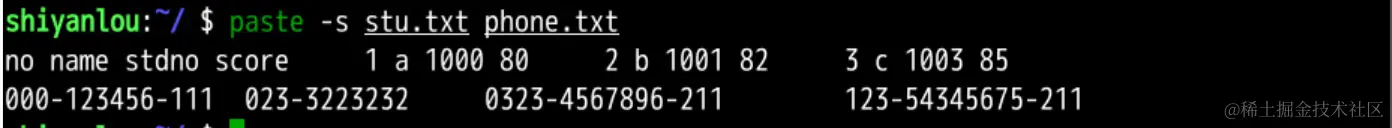 stu.txt和phone.txt文件中的内容各自拼接成一行