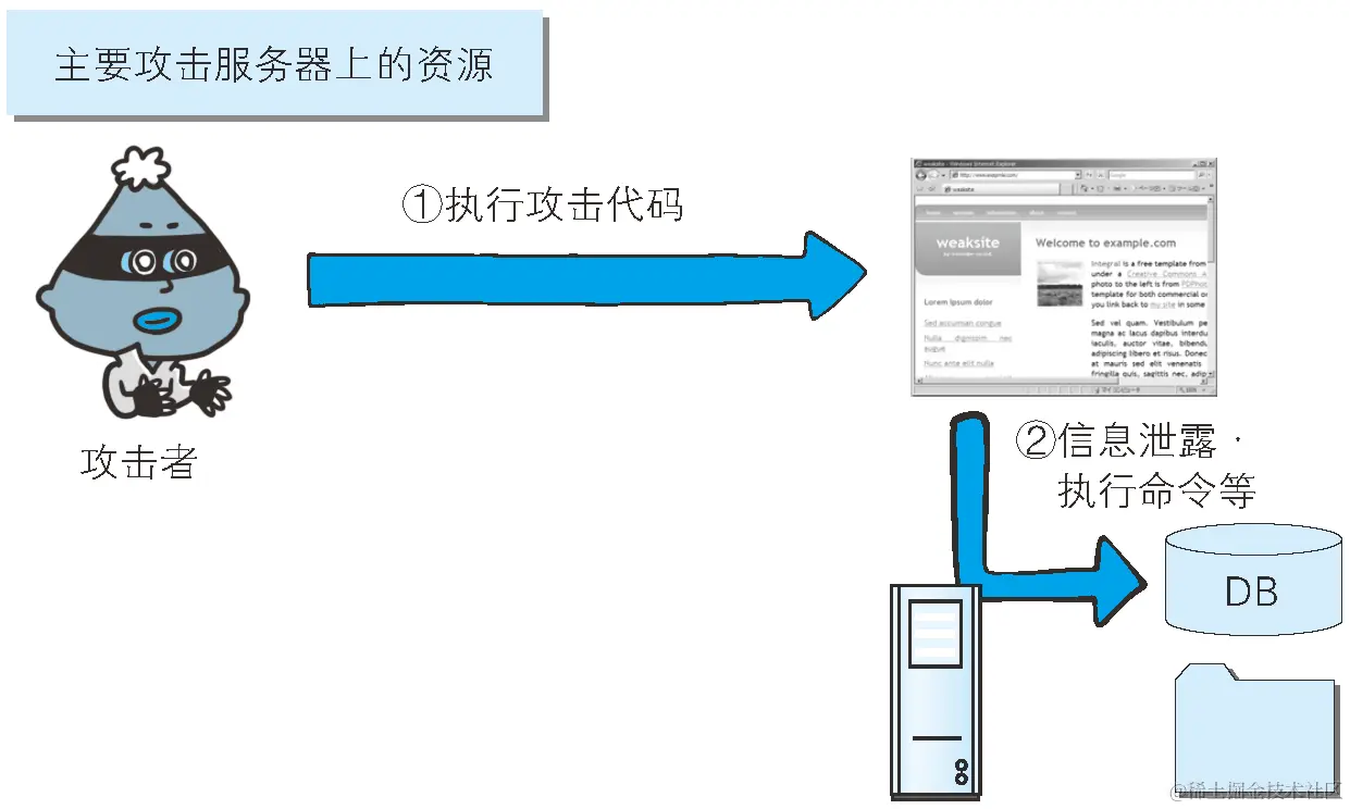 攻击者通过直接访问Web应用,把攻击代码传入的攻击模式。由于该模式是直接针对服务器上的资源进行攻击,因此攻击者需要能够访问到那些资源。