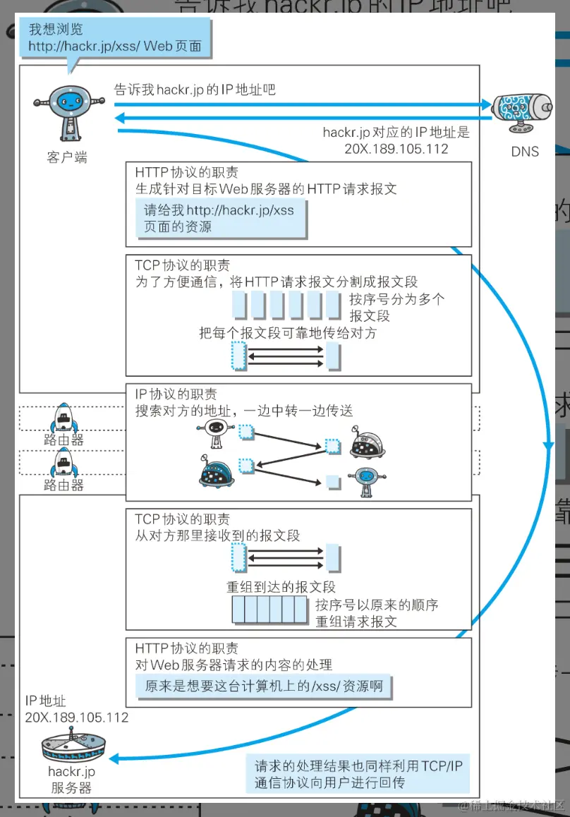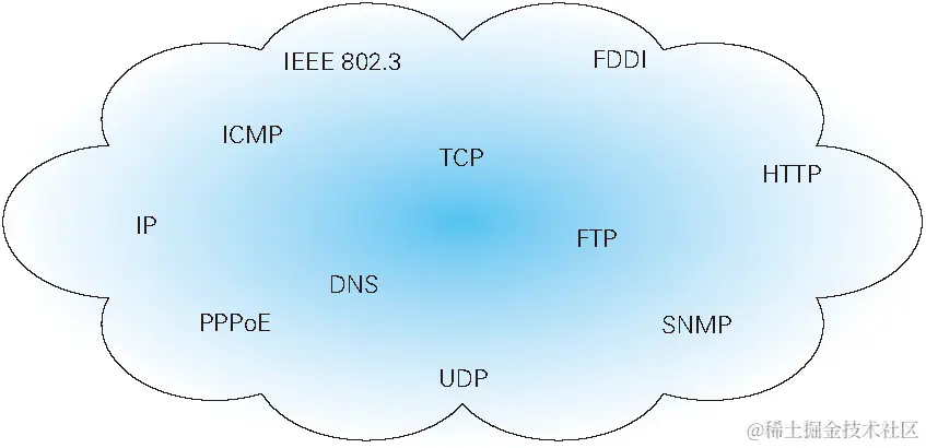 协议中存在各式各样的内容,从电缆的规格到IP地址的选定方法、寻找异地用户的方法、双方建立通信的顺序、Web页面显示需要处理的步骤等等。