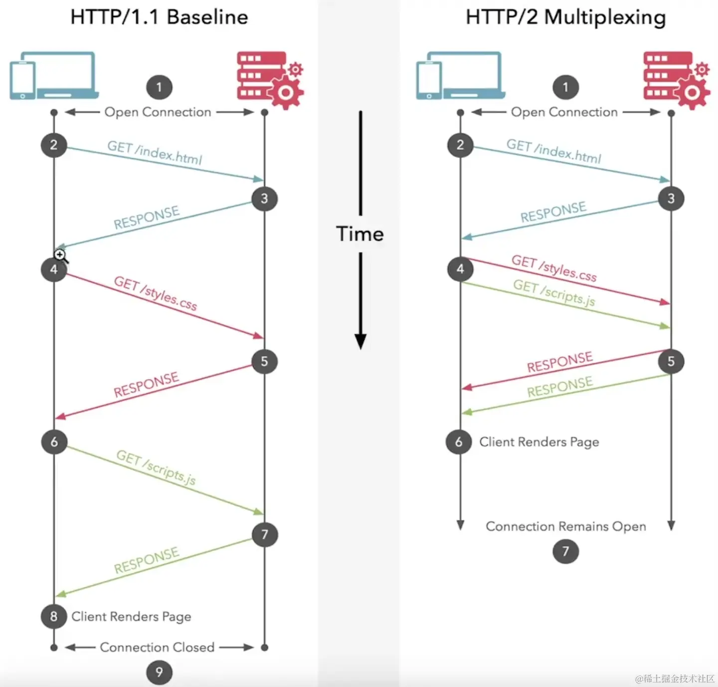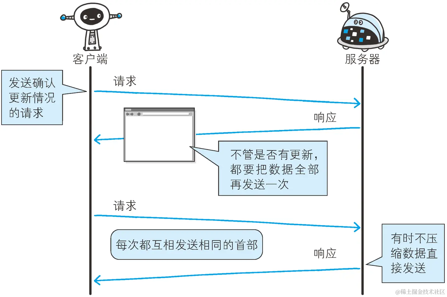 🙋:从历史进程的角度来看,是互联网的用户在不断推动协议的发展。从刚开始只有文本到后来有了超文本。传输内容扩展后又增加了对网络传输速度的要求,便出现了持久连接、缓存机制等。再到后面开始考虑安全问题,于是便有了加密通信技术。一切都是以用户的需求为导向,用户需求要越来越高,协议就越来越高级,越来越完善。