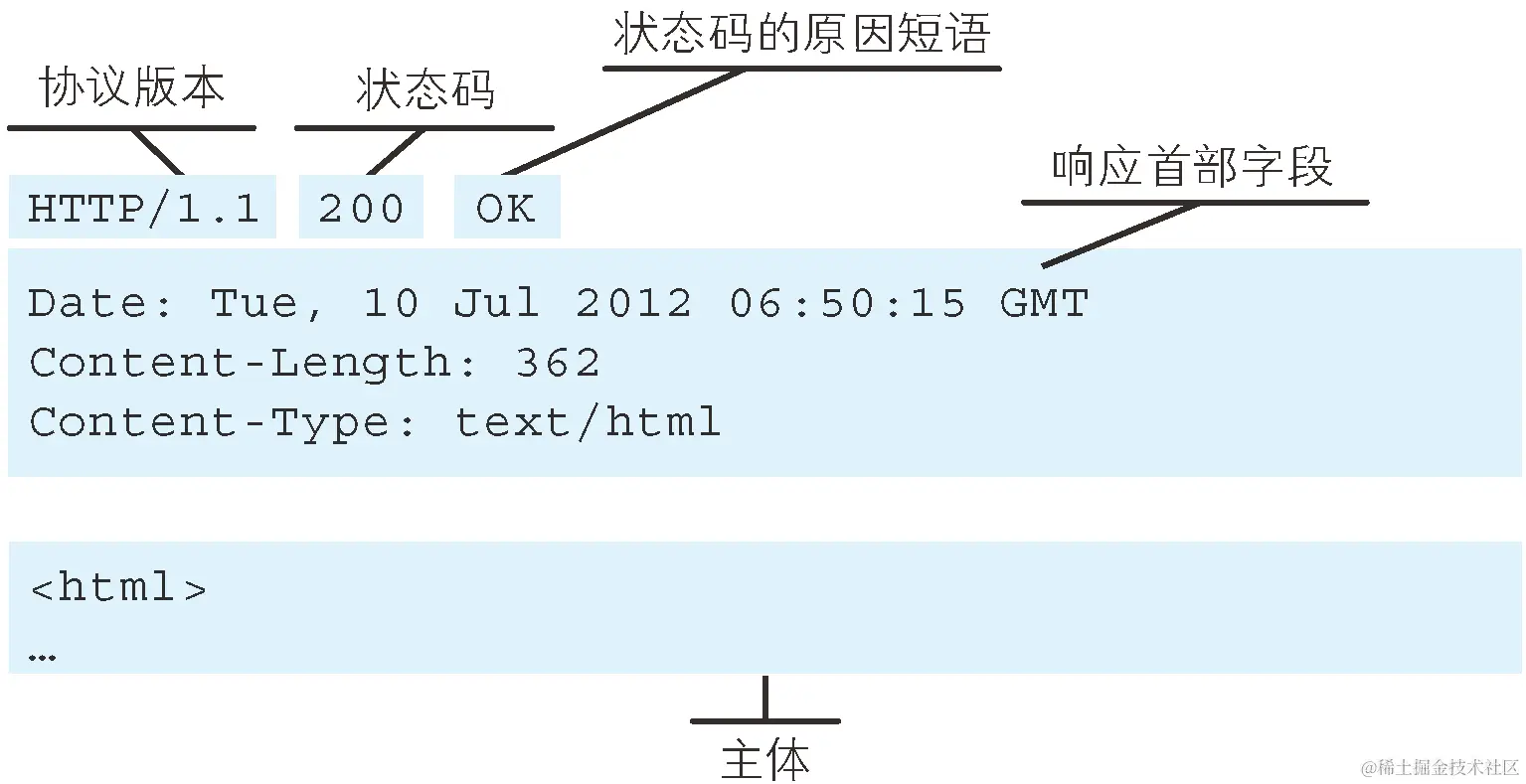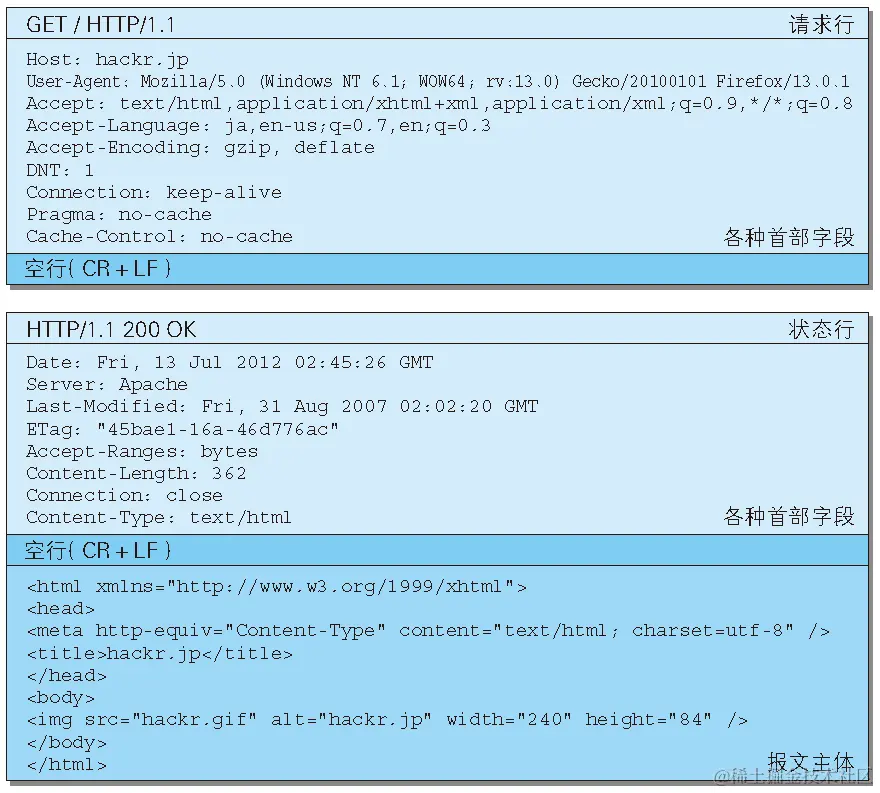 - 服务器收到报文后处理请求,同样拼好报文再发给浏览器