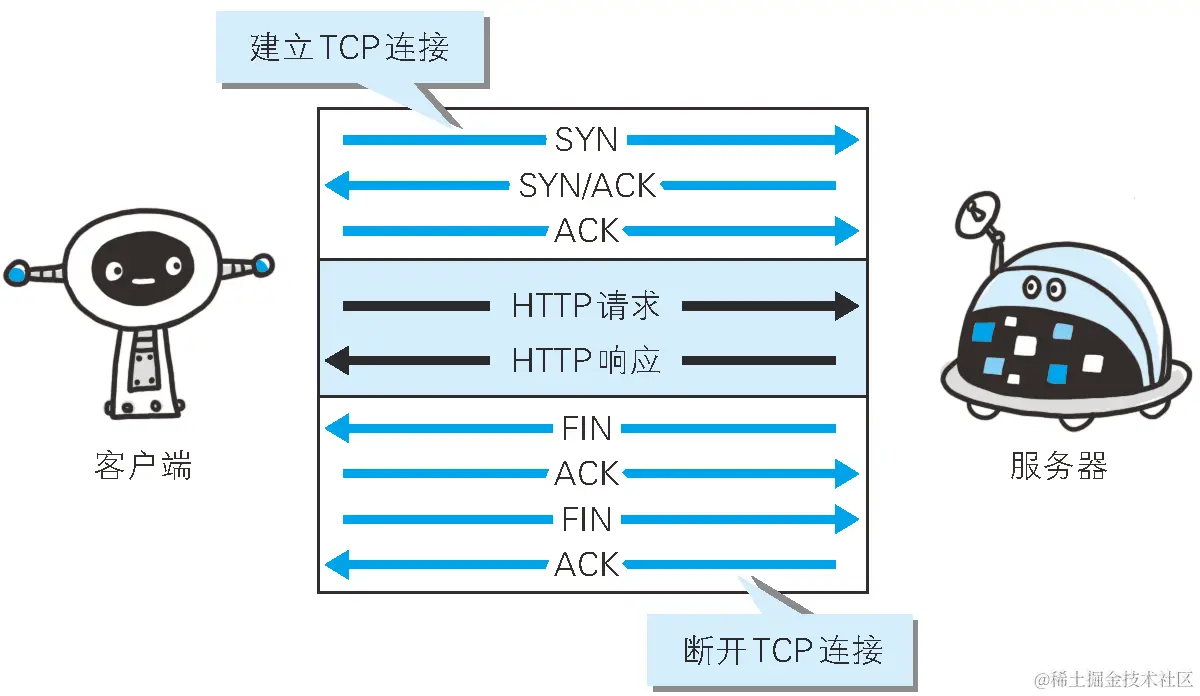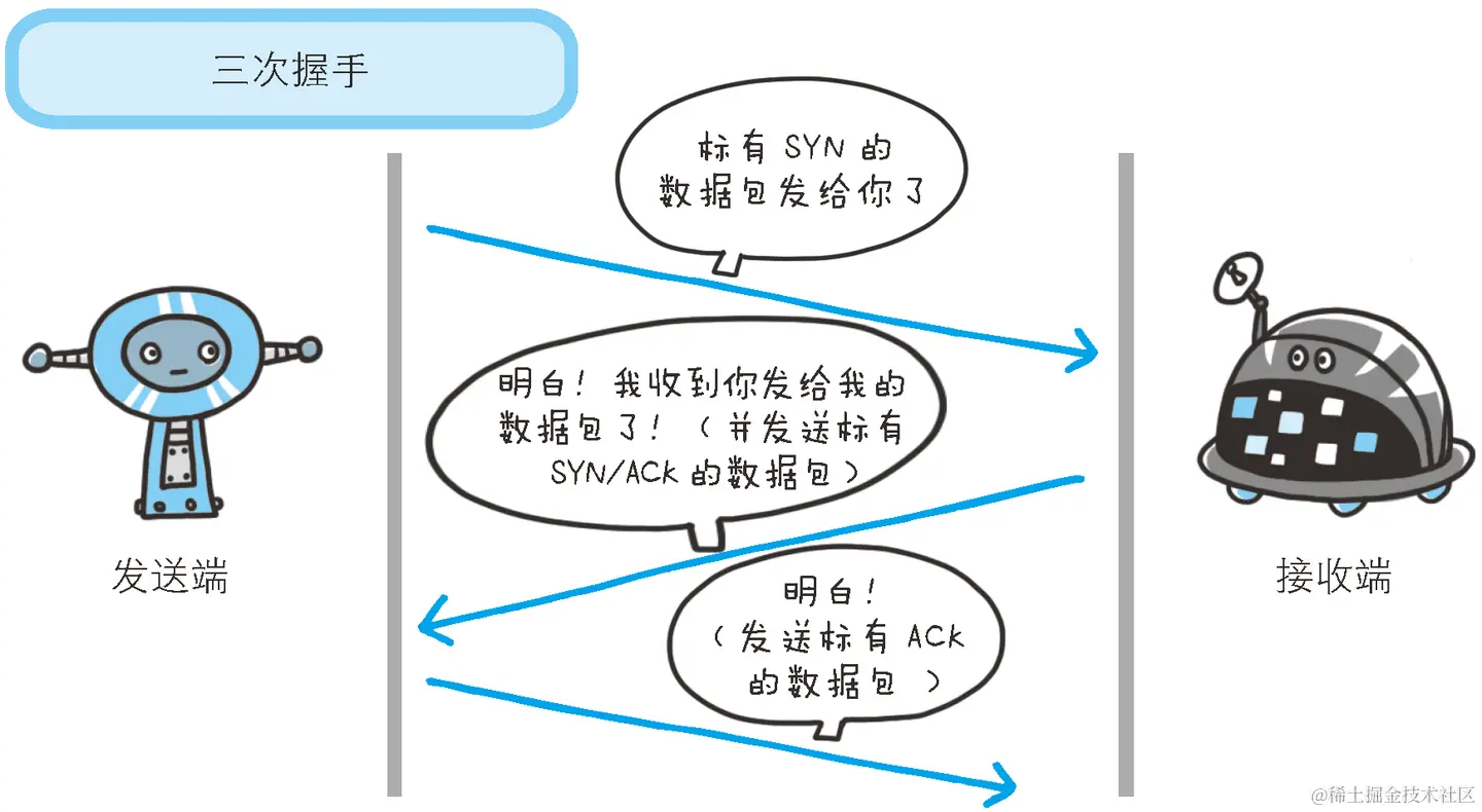 - 浏览器用TCP的三次握手与服务器建立连接