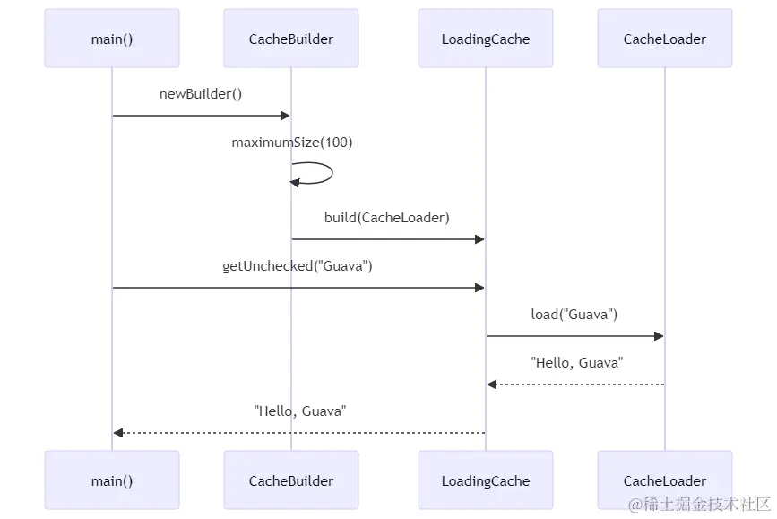 System.out.println(cache.getUnchecked("Guava")); // 输出:Hello, Guava