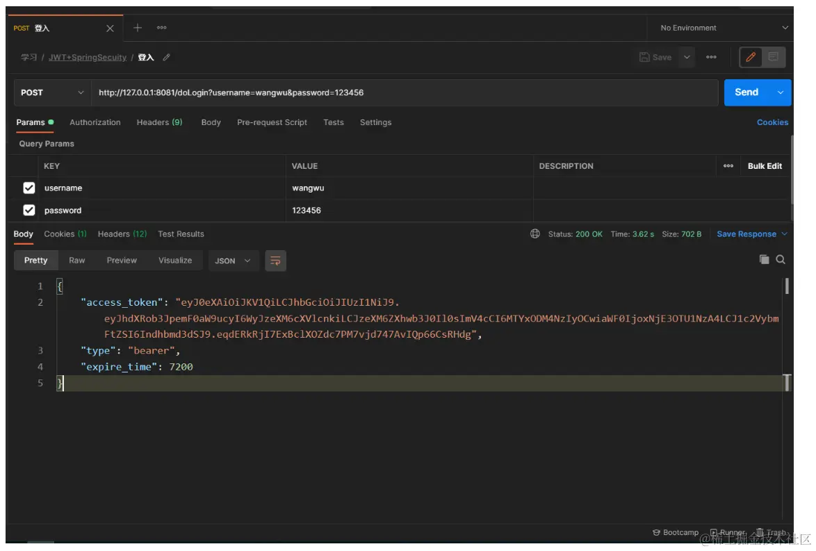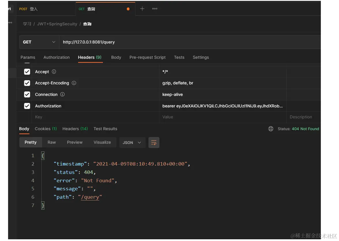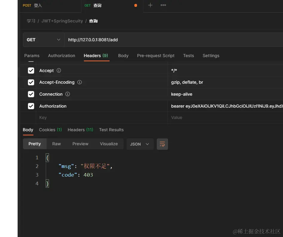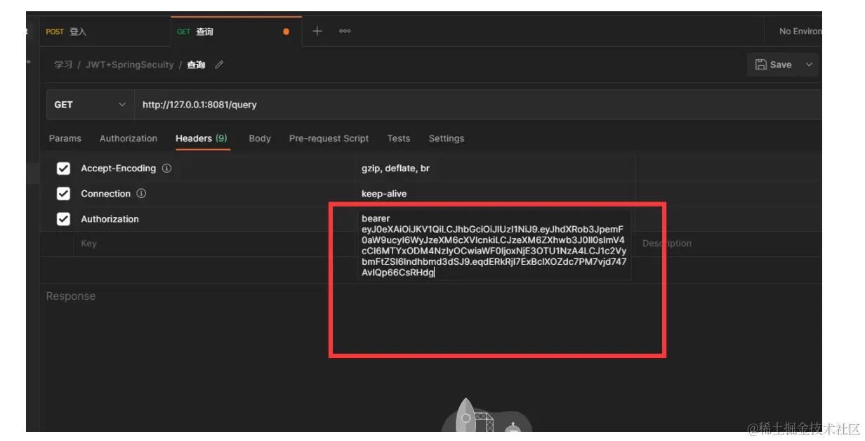 可以带入刚刚我们的登录过的token 因为我们设置了过期时间 2小时嘛