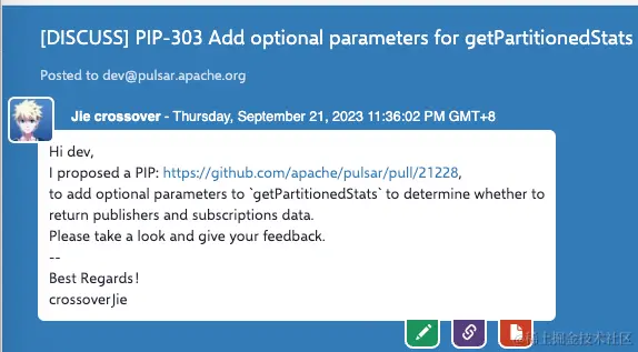 以上就是我第一次参与 Pulsar 社区的提案过程,我猜测其他社区的流程也是大差不差;其中重点就是异步沟通;大家都认可之后真的会比实时通信的效率高很多。