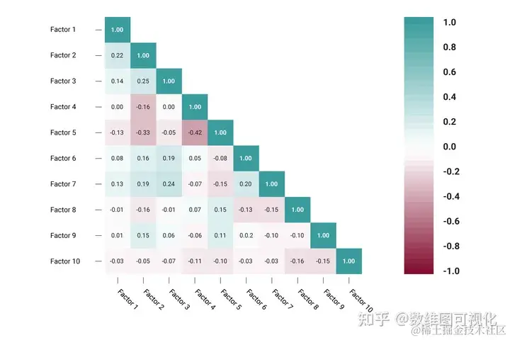 相关矩阵是显示变量之间相关系数的表。每个单元格表示两个变量之间的关系,色阶用于传达变量是否相关以及在多大程度上相关。