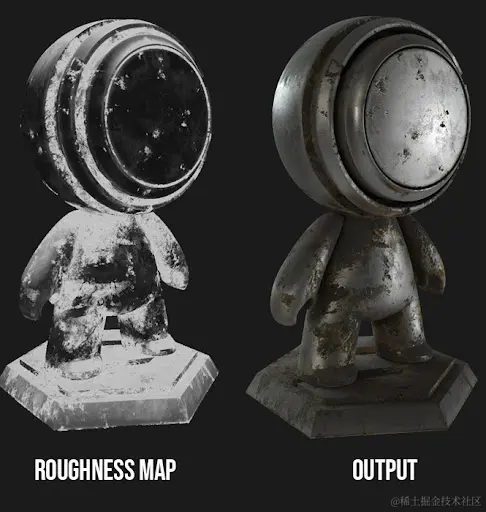 粗糙度/光泽度图,也称为微表面散射,是一种灰度图,其中白色表示最大光泽度,黑色表示最大粗糙度。比如说,如果你想增加表面光泽度或粗糙度的变化,那么你肯定可以使用它。