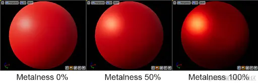 如下图所示,黑色值用作漫反射色。比如说,如果你想模拟真实世界的金属材料,那么你当然可以使用金属度贴图。