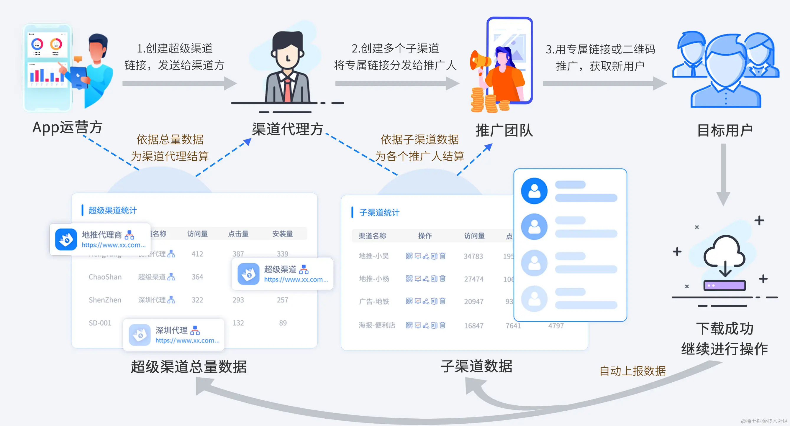 互联网信息时代,无论线上线下、站内站外,都是获客引流的场景所在,越来越多的App选择靠多渠道投放广告或分享邀请来获取流量,但随着渠道越来越多,流量来源的统计和数据无法统一管理的弊端就开始凸显。如何通过数据客观分析各个渠道用户的行为价值、洞察客户需求?如何将各个散落零碎的渠道数据和指标整合成直观且有意义的报表?