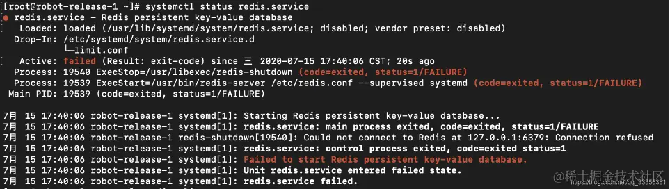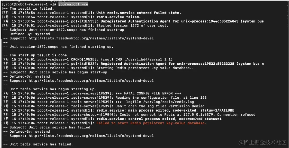 7月 15 17:40:06 robot-release-1 redis-server[19539]: Can't open the log file: Permission denied